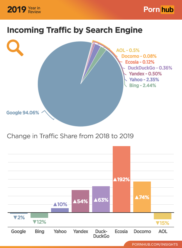 Pornhub’s statisticians pay particular attention to the incoming source of Pornhub’s traffic to make finding results more easy. While most visitors go directly to Pornhub before they search for content, a lot of people begin with their web browser’s search engine.