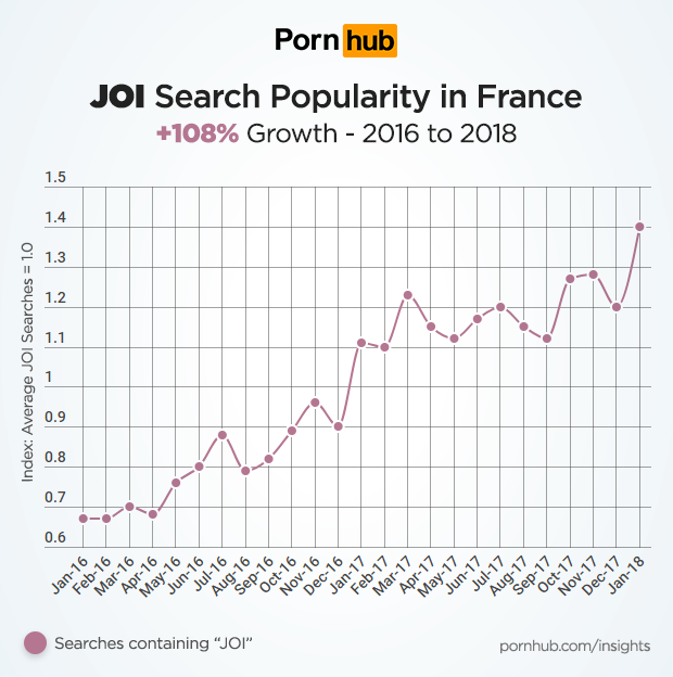 From January 2016 to January 2018, searches for JOI have gained 108% in popularity among French visitors.