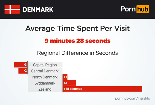 While the average visit time from Denmark is 9 minutes and 28 seconds, folks from Zealand last about 18 seconds longer.