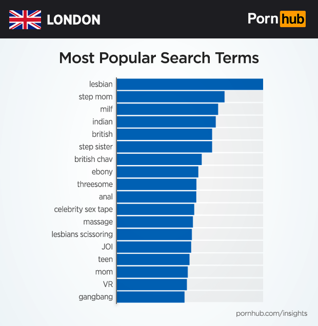 Lesbian is also the most popular category of videos viewed in London, followed by Ebony and MILF.