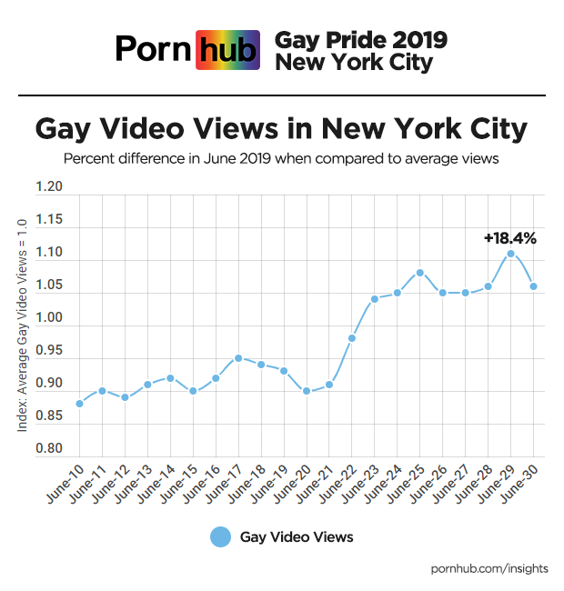 New York City’s 2019 Gay Pride Parade took place on June 30th. Not only was the parade attended by millions, more than 150,000 people took part in the parade procession. So naturally when Gay Star News asked if the New York celebrations had an effect on Pornhub’s traffic, our statisticians were able to see some significant results in our Analytics data.