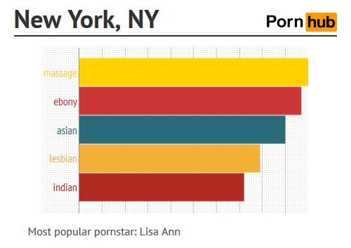 Pornhub Insights previously told us what users from each state search for on Pornhub, and how long they last on the site. This time our statisticians got together with the folks at Digg to find out what the Top 5 search terms are in major cities across the United States. In addition we analyzed which pornstars are the most popular. Perennial MILF favorite “Lisa Ann” still tops the list in most cities, but new babes like reality star “Farrah Abraham” and Duke University student “Belle Knox” managed to take the top spot in some places.
