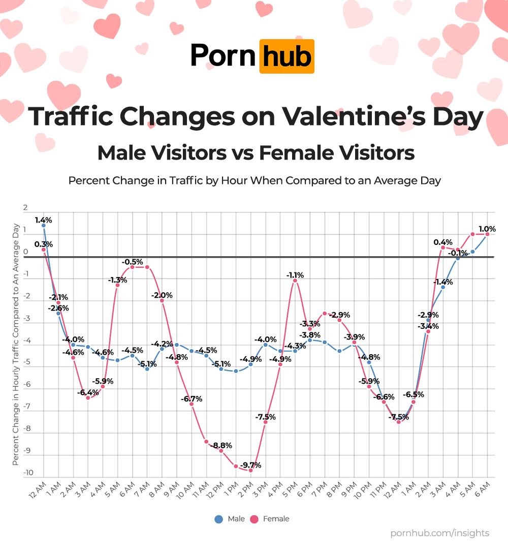 In this edition of Pornhub Insights, we took a closer look at your activity on the site for the week leading up to, and on, Valentine’s Day. With special attention to specific terms revolving around the International Day of Love, we pulled data that yielded some interesting results.