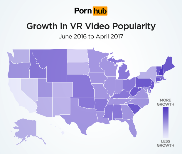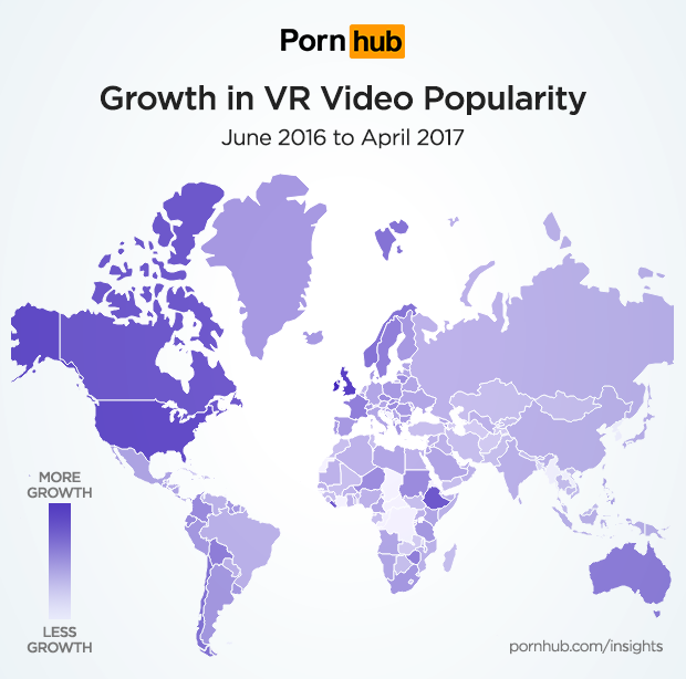 Over the last year, Virtual Reality has been one of the fastest growing categories of videos on Pornhub. Originally launched in the Spring of 2016, Pornhub’s VR content included just 30 videos. Since then, hundreds of new VR videos have been uploaded each month, bringing the total to over 2600 videos by May of 2017. Forbes inquired to see how far VR had penetrated into the daily usage of Pornhub users.