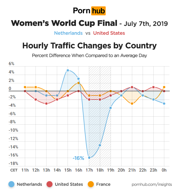 Our visitors were getting ready for this big final match! We hope you enjoyed this edition of Pornhub Insights. To see how other sporting events affect traffic, check out our Champions League Finals post.